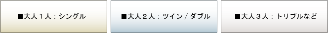 部屋のタイプは一般的にベッド数を確約するものではなく、1部屋に宿泊する大人の人数で現します。